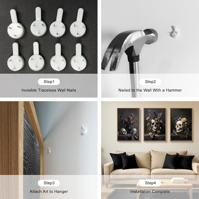 - 【Vintage Skull Halloween Wall Art】This framed artwork combines skulls, flowers, and other elements, creating a unique and highly artistic visual effect. It is not just a simple decorative painting but a work full of symbolic meaning, evoking deep thinking about life, death, and the passage of time. Whether placed in a living room, study, or office, it can immediately attract people's attention and become the focal point of the space.