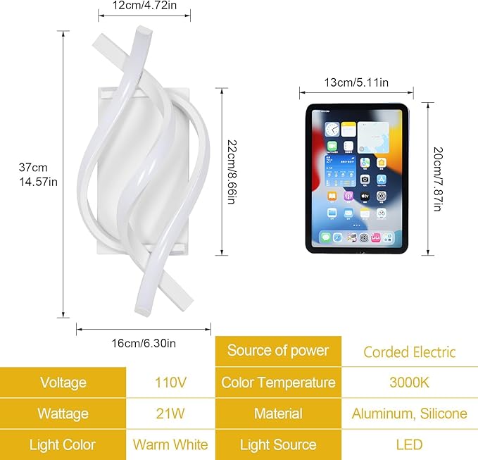 - 【Specification】DAXGD modern wall light dimensions: L14.6xW6.3 inches, chassis size: L8.6xW4.7 inches. Power consumption: 21W, with a 3000K warm white color temperature. It provides 1900 lumens of brightness, ideal for illuminating areas between 70-130 ft². For larger spaces, consider installing multiple units for optimal lighting.