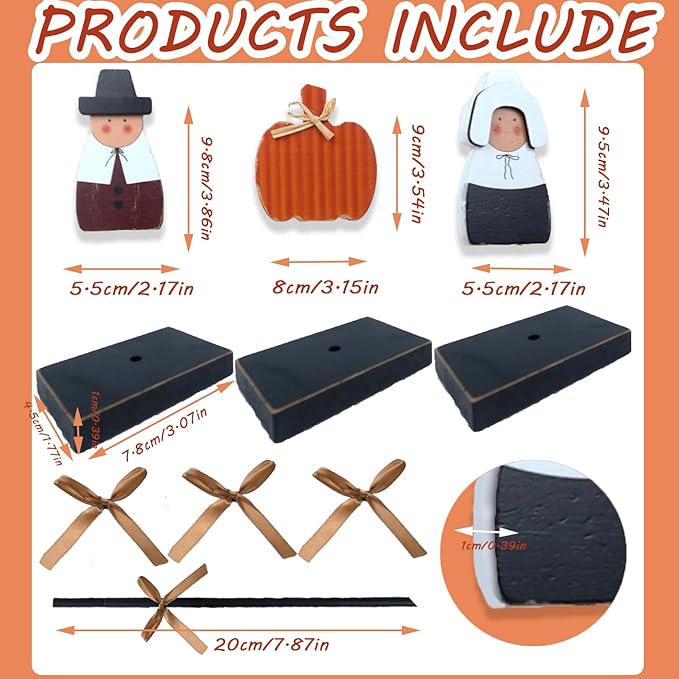 - Detailed Dimensions: These Thanksgiving wooden decorations measure around 10 inches, square bases are 8 cm / 3.15 inches, and are 0.5 inches thick. Enough for your Thanksgiving decoration needs. Thanksgiving Party Decorations.