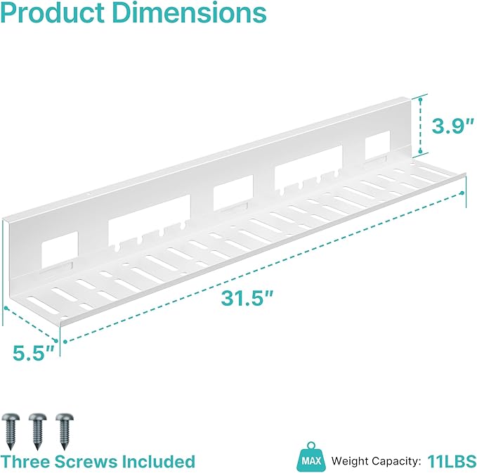 - 【Smart Size, Strong Build】Measuring 31.5 x 5.5 x 4 inches, this desk cable management solution holds up to 11lbs — enough space and strength for your power strip, chargers, and excess wires. A must-have for efficient wire management under desk setups.