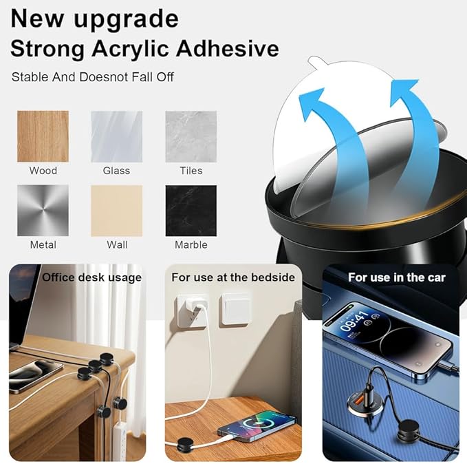 - Damage-Free Acrylic Adhesive Featuring premium acrylic adhesive, these clips stick securely to smooth surfaces like wood, glass, or ceramic tiles. Simply press to install, wait 30 minutes for full adhesion, and enjoy a secure hold without damaging walls, desks, or devices