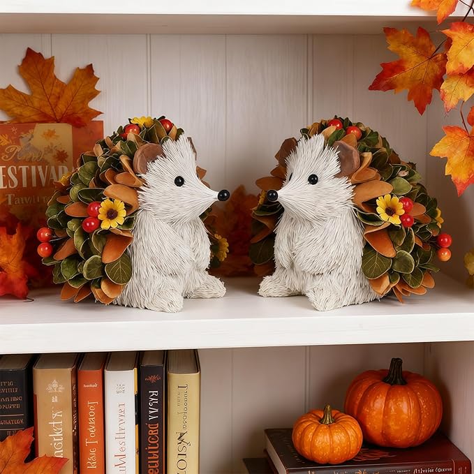 - Versatile Display Options: Whether placed as a shelf sitter, a tabletop centerpiece, or a kitchen office table decor, the fall hedgehogs fit seamlessly into various spaces. It's ideal for sprucing up kitchens, offices, mantles, or dining tables with a touch of autumn charm