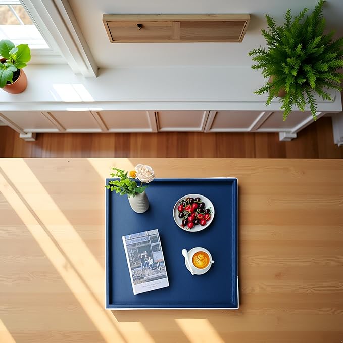 - Versatile Serving Tray for Every Occasion:This spacious leather tray offers ample room for organizing drinks, snacks, books, or decor. Perfect as a coffee table tray for daily essentials or a serving tray for gatherings, it pairs seamlessly with food-safe liners (recommended for direct food contact) to display cheeses, fruits, cocktails, and more. Keep your dining area clutter-free while adding a touch of sophistication to parties, holidays, or casual family moments.