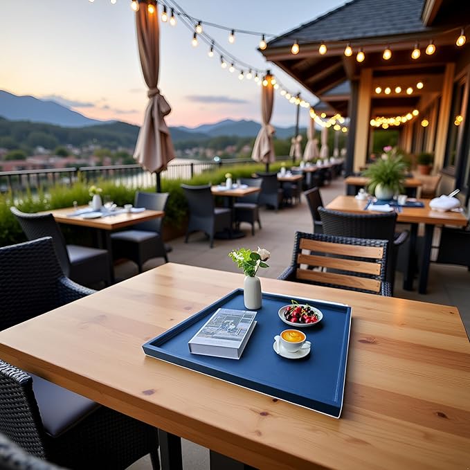 - Practical & Slip-Resistant Design:The textured leatherette surface enhances grip to prevent cups, bottles, or delicate items from sliding, even when moving the tray. Spills and hot beverages like coffee or tea are no concern—its waterproof coating and heat resistance simplify cleanup and protect furniture. Use it confidently as a breakfast tray in bed or a bar tray for outdoor entertaining.
