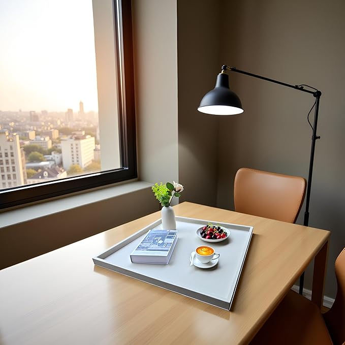 - Practical & Slip-Resistant Design:The textured leatherette surface enhances grip to prevent cups, bottles, or delicate items from sliding, even when moving the tray. Spills and hot beverages like coffee or tea are no concern—its waterproof coating and heat resistance simplify cleanup and protect furniture. Use it confidently as a breakfast tray in bed or a bar tray for outdoor entertaining.