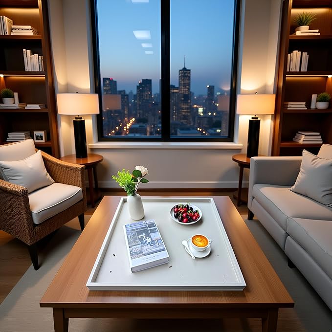 - Space-Saving Organizer for Any Room:Maximize utility without sacrificing style! From holding remotes and magazines in the living room to serving as a vanity tray in the bedroom, this ottoman tray adapts to your needs. Its slim profile and lightweight build make it easy to reposition as a bedside caddy, office supply holder, or decorative centerpiece—always blending functionality with understated elegance.