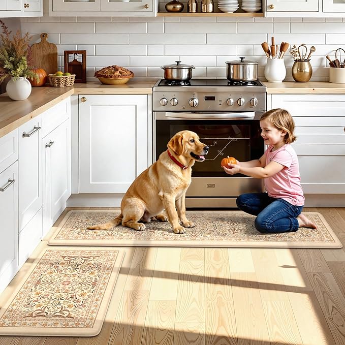 - Floral Pattern & Versatile: Featuring a freshness floral design, this comfort carpet adds a touch of elegant and vitality to your space. The combination of vintage bohemian and modern style can decorate your kitchen, bathroom, laundry room, bathroom