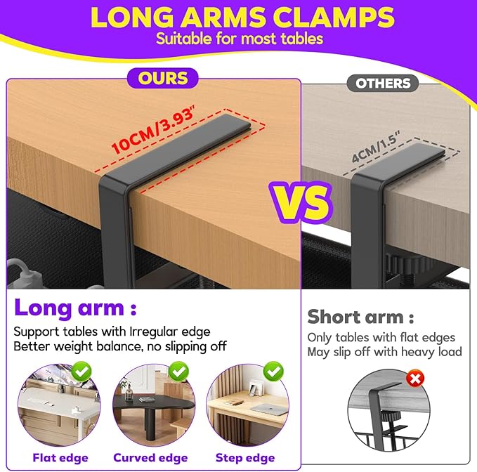 - ⚡【No Drill Installation & Wider Clamp】: This under desk organizer tray has no drill clamp fits desks 0.4"-2.76" thick (metal/wood/glass). Upgraded 30% longer bracket ensures secure desk back rod width greater than 1.57" installation,hold without damaging your desk
