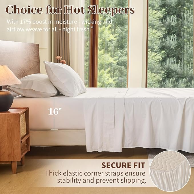 - Linen Sheets Include:This Queen linen sheet set includes one flat sheet (90" x 102"), one fitted sheet (60" x 80"), and two pillowcases (20" x 30"). The four-corner deep pockets feature elasticized edges that securely hug your mattress, eliminating nighttime slipping and noisy disruptions—ensuring peaceful, worry-free sleep all night long.