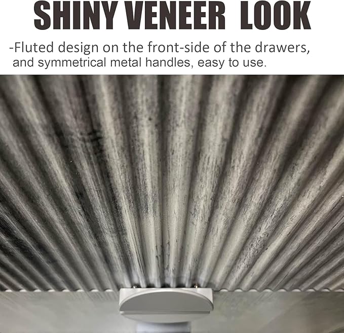 - 【Stable, Durable and Textured】 Constructed from optimal MDF, P2 engineered wood and coated metal pull. Specially, the fluted panel uses blister molding tech. Notably, the cabinet's stability is reinforced by the innovative inclusion of a steel support frame, guaranteeing a reliable and sturdy piece of furniture.