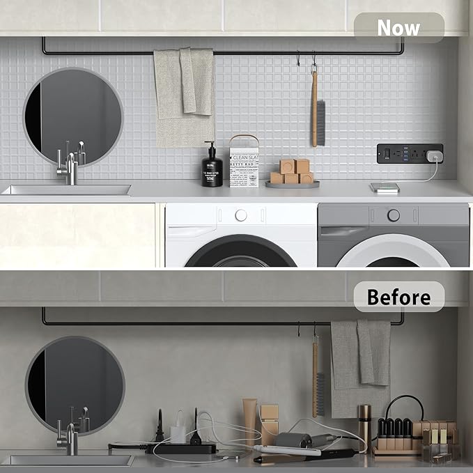 - ✅Space-Saving Desktop Accessory: Designed to be Recessed into Desks or Cabinets, Drawer ,this Power Strip Eliminates Clutter and Saves Space, Perfect for Modern Homes, Offices, and Entertainment Centers.