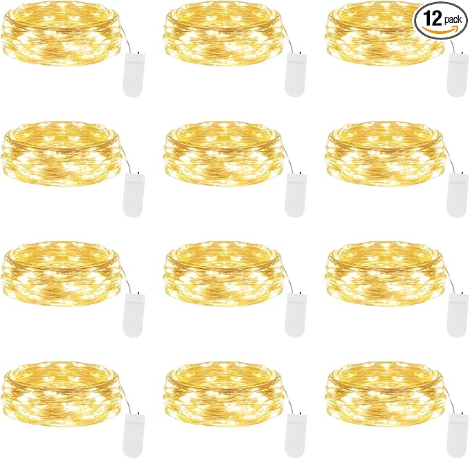 - 【12-Pack Battery Operated String Lights】 Powered by 2 CR2032 batteries, these fairy lights are equipped with 20 energy-efficient micro LEDs that are perfect for use in mason jars, wine bottles, vases, DIY crafts, wreaths, centerpieces, or gift wrapping. Ideal for cozy evenings, festive holidays, or romantic celebrations, a soft and magical glow is effortlessly created, transforming ordinary moments into unforgettable memories