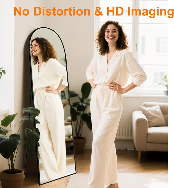 - METAL FRAME& HD REFLECTION: Floor mirror frame is made of aluminium alloy and is very resistant and long lasting. The mirror glass is made of 5mm float glass, which will never distort and offer you a high definition display.