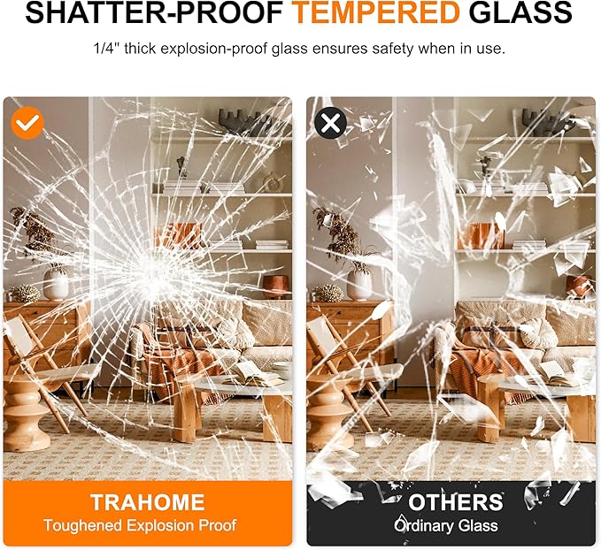 - UNIQUE DESIGN: Arched mirror's stand can be completely hidden on the back, when hung on the wall. And floor mirror has an explosion proof design on the black backboard to prevent splinters and make the mirror safer.