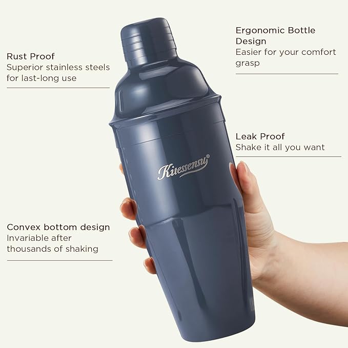 - Bartender's New Choice: Whether you want to celebrate or unwind, be stimulated or relaxed, remember or forget—cocktails are a way to experience life’s moments. Now featuring an innovative design with stunning color options in cream pink and sophisticated navy blue, this shaker set doesn’t just perform—it stands out. The modern look not only enhances your home bar but also makes it a stylish centerpiece for parties or quiet nights in. Shake things up with Kitessensu and enjoy cocktails in style.