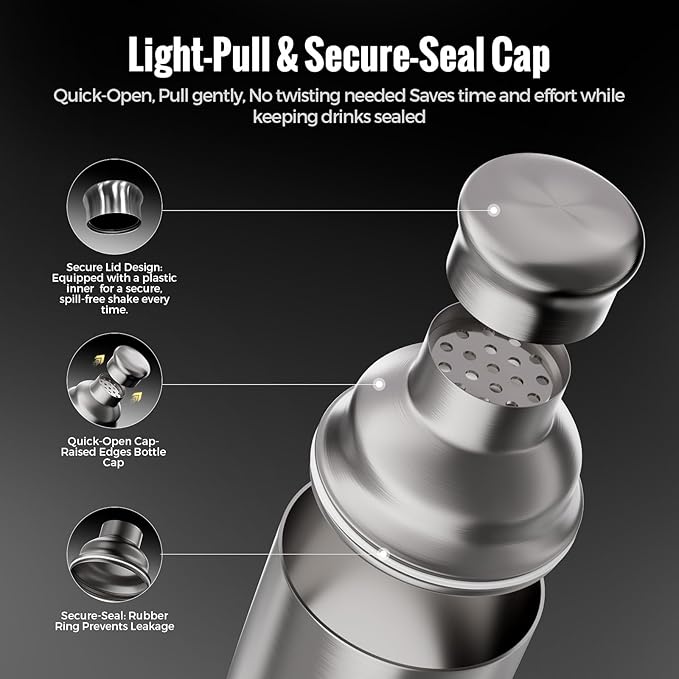 - 【Premium Vacuum Insulation & No-Freeze Grip】: Our Insulated Cocktail Shaker features a premium vacuum double wall design that prevents hand-freeze while shaking cold drinks. The leakproof rubber seal ensures no messy spills, while the raised-edge cap offers a secure anti-slip grip—perfect for home mixologists or pro bartenders seeking comfort and control.