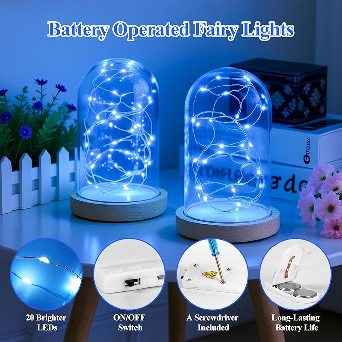 - 【6-Pack Battery Operated String Lights】 Powered by 2 CR2032 batteries, these fairy lights are equipped with 20 energy-efficient micro LEDs that are perfect for use in mason jars, wine bottles, vases, DIY crafts, wreaths, centerpieces, or gift wrapping. Ideal for cozy evenings, festive holidays, or romantic celebrations, a soft and magical glow is effortlessly created, transforming ordinary moments into unforgettable memories