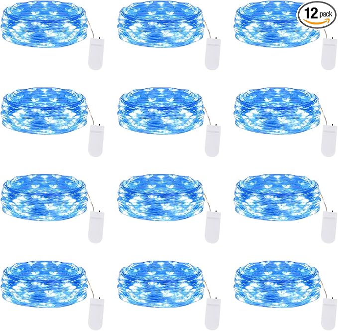 Lakumu 12 Pack Fairy Lights Battery Operated -7FT 20LED String Lights Silver Wire Firefly Starry Lights for DIY Christmas Decorations Mason Jar Wedding Party Centerpiece Table Decor, Blue