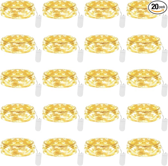 - 【20-Pack Battery Operated String Lights】 Powered by 2 CR2032 batteries, these fairy lights are equipped with 20 energy-efficient micro LEDs that are perfect for use in mason jars, wine bottles, vases, DIY crafts, wreaths, centerpieces, or gift wrapping. Ideal for cozy evenings, festive holidays, or romantic celebrations, a soft and magical glow is effortlessly created, transforming ordinary moments into unforgettable memories