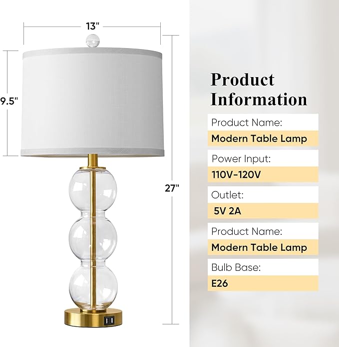 - Modern Glass Table Lamp: Features with gold metal base, clear glass body and a light linen shade, presenting a luxurious and modern look that complements any decor. Whether you're looking to enhance your home decor or add some lighting solutions to your space, this gold table lamps are sure to meet your individual needs