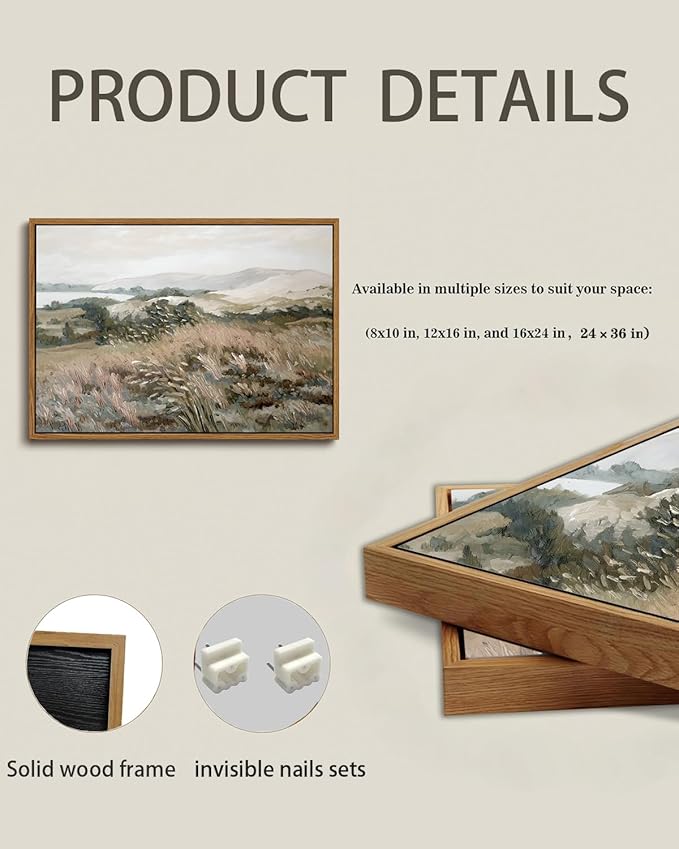 KISSFOX Vintage Landscape Canvas Wall Art Neutral Farmhouse Hills Lake Framed Wall Art Serene Countryside Paintings Artwork Rustic Art Prints For Bedroom Living Room