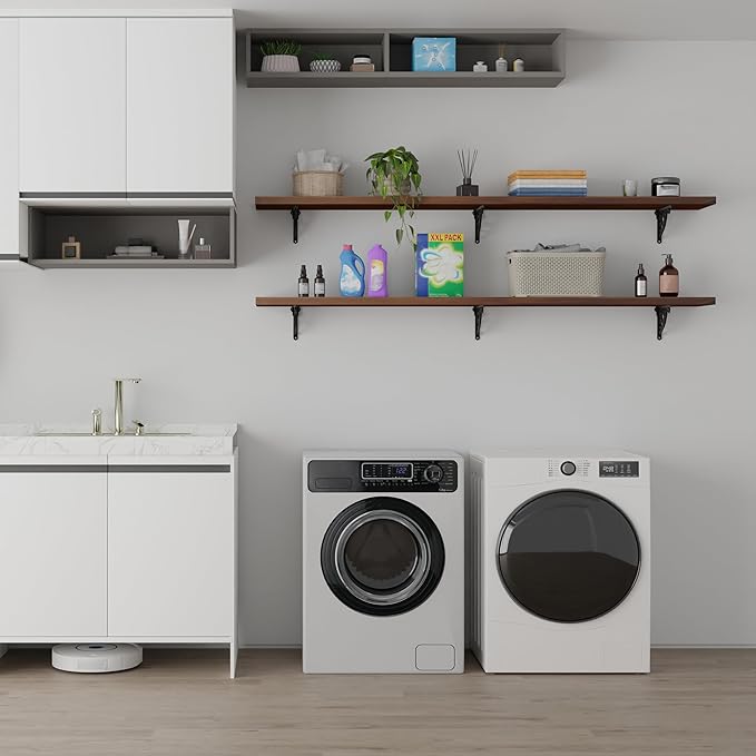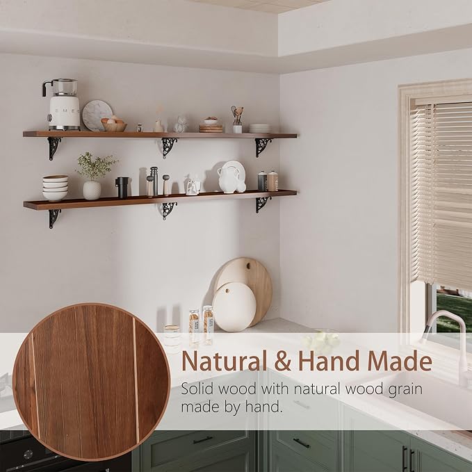 - 【Sturdy and Durable】The long wall shelves are constructed of 0.8-inch thick solid wood boards with iron brackets,ensuring that the shelves have an excellent load bearing capacity and are able to safely store a variety of items without worrying about the durability of the shelves.