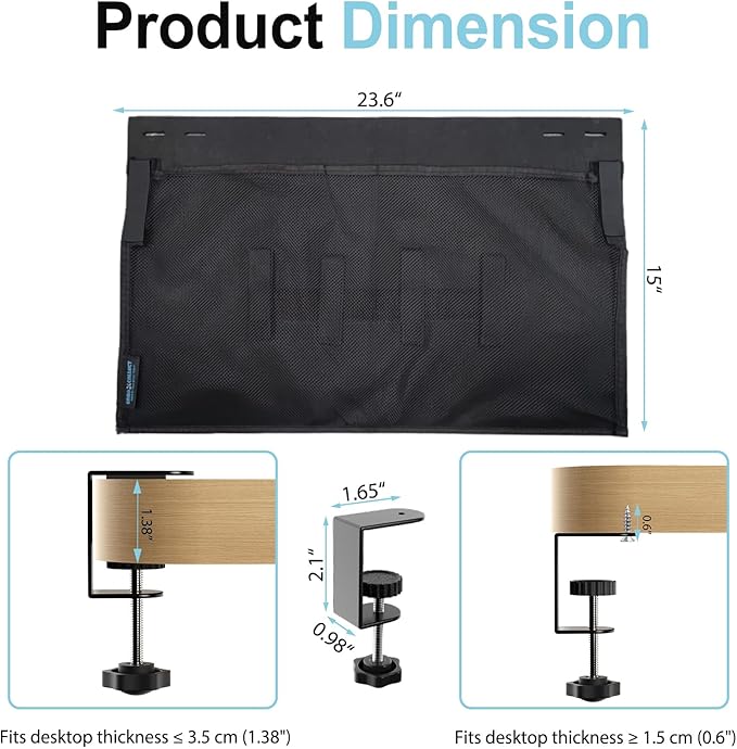 - SIMPLE, NO-DRILL INSTALLATION – Achieve effortless cord management under desk with our no drill setup. Simply attach this desk mounted privacy panel using the included adjustable clamps or optional screws for a rock-solid fit on most desks.