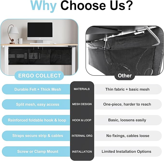 - ENHANCED SAFETY & CLUTTER-FREE WORKSPACE – Our effective desk wire management system significantly reduces tripping hazards and helps keep curious children and pets safe from loose cables.