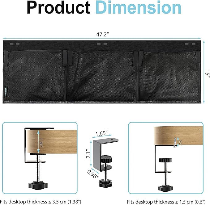 - SIMPLE, NO-DRILL INSTALLATION – Achieve effortless cord management under desk with our no drill setup. Simply attach this desk mounted privacy panel using the included adjustable clamps or optional screws for a rock-solid fit on most desks.