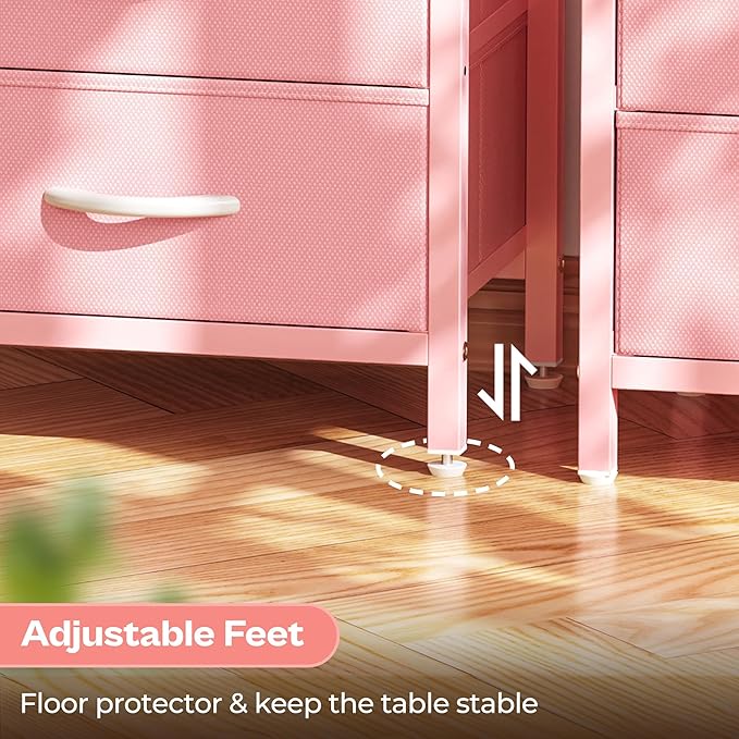 Huuger Nightstand with Charging Station, Side Table with Fabric Drawers, End Table with Open Shelf, Bedside Table with USB Ports and Outlets, Night Stand for Bedroom, Pink