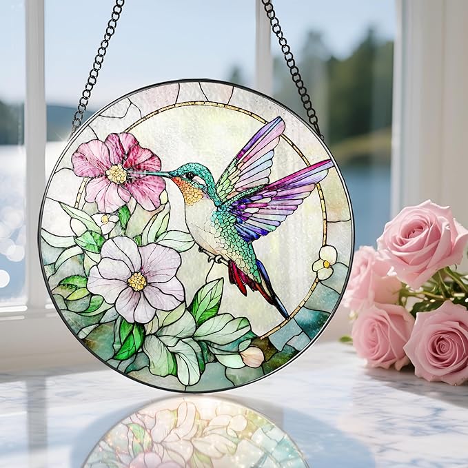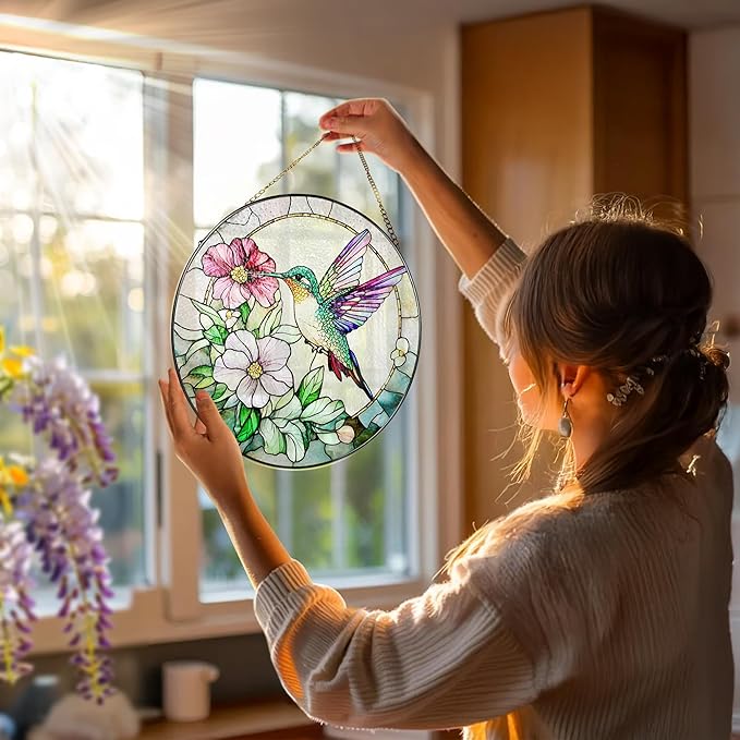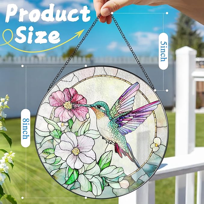 - Ideal Gifts: Stained glass window hanging is a unique and meaningful gift choice! Whether celebrating birthdays, Thanksgiving, Christmas, weddings, housewarming, or expressing love on Valentine's Day or Mother's Day, this exquisite colored glass suncatcher can as a blessing filled with light and color, bringing surprise, decorative fun, and warm emotional value to the recipient.