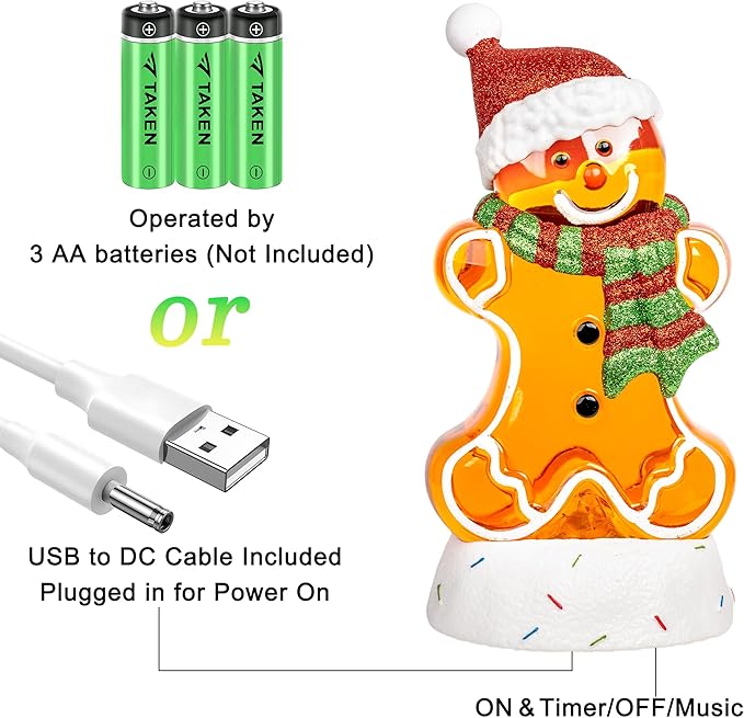 - Dual Power Options: Enjoy convenience with 3 AA battery or USB power, allowing versatile placement on your mantel, tabletop, or anywhere in your home during the holiday season.