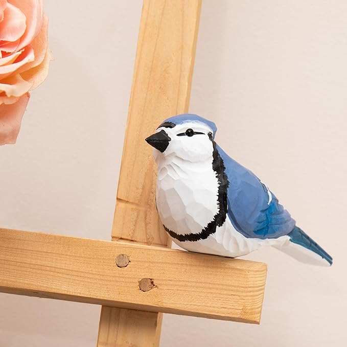 - 🟡 Realistic Blue Jay Design - This hand-carved Blue Jay figurine perfectly captures the bold and intelligent spirit of one of North America's most iconic birds. With vivid blue feathers, a crisp white chest, and a distinctive black crest and markings, this lifelike sculpture adds a touch of natural elegance and vibrant color to any space—ideal for bird lovers, nature enthusiasts, and collectors of woodland décor.