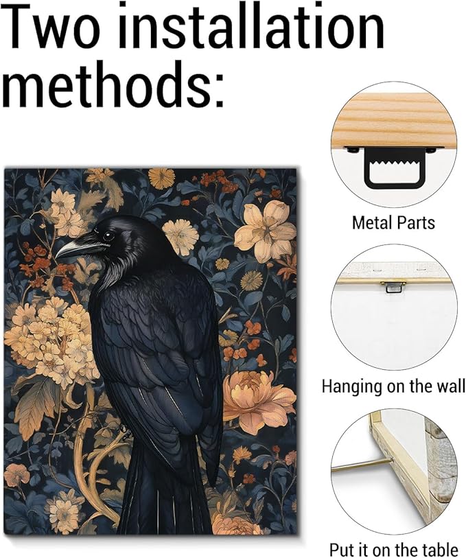 Aesthetic Raven Floral Wall Art Decor Vintage Raven Cottagecore Canvas Print Poster Dark Academia Framed Painting Wall Decoration for Home Farmhouse Living Room Bedroom 8x10 Inch