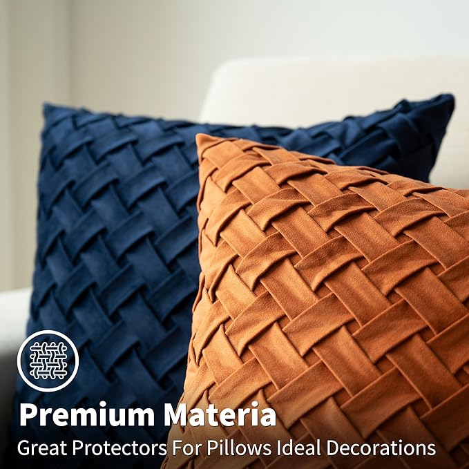Velvet Decorative Throw Pillow Covers Set of 2, 18x18 Inch Soft Modern Weave Cushion Case, Farmhouse Home Decor Pillowcase for Sofa Living Room Couch Bed Orange
