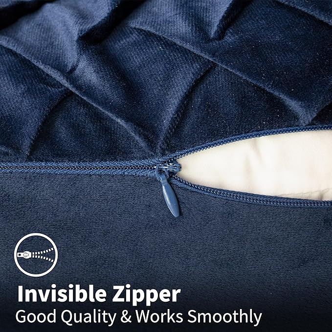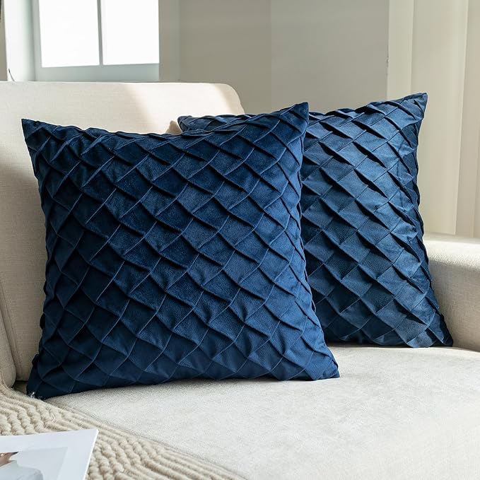 Velvet Decorative Throw Pillow Covers Set of 2, 18x18 Inch Soft Modern Weave Cushion Case, Farmhouse Home Decor Pillowcase for Sofa Living Room Couch Bed Navy