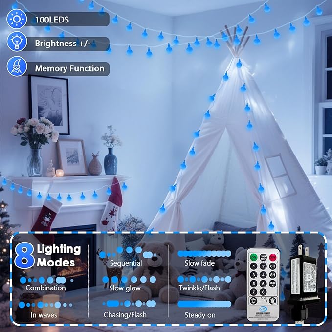 - Product Dimensions: Featuring 100 upgraded globe LED bulbs, total 43ft(33ft string lights and 10ft leading line), the string lights plug in emit a soft, cozy glow, ideal for everyday decor as well as holiday celebrations.