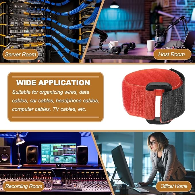 - Application: Keep your space tidy with reusable cable ties! Suitable for organizing wires, data cables, car cables, headphone cables, computer cables, TV cables, etc. It can also be used to tie curtains, tie umbrellas, fix tools, and organize holiday lights. Widely used in offices, homes, and garages