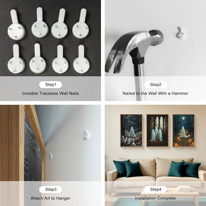 - [Halloween Cute Ghost Framed Wall Art Set] This cute ghost framed wall art set captures grove and ghost evoking an mysterious atmosphere. Its modern Shadowy aesthetic is reminiscent of Vintage halloween charm. Utilizing this artwork as part of your decor will make your room full of poetry.