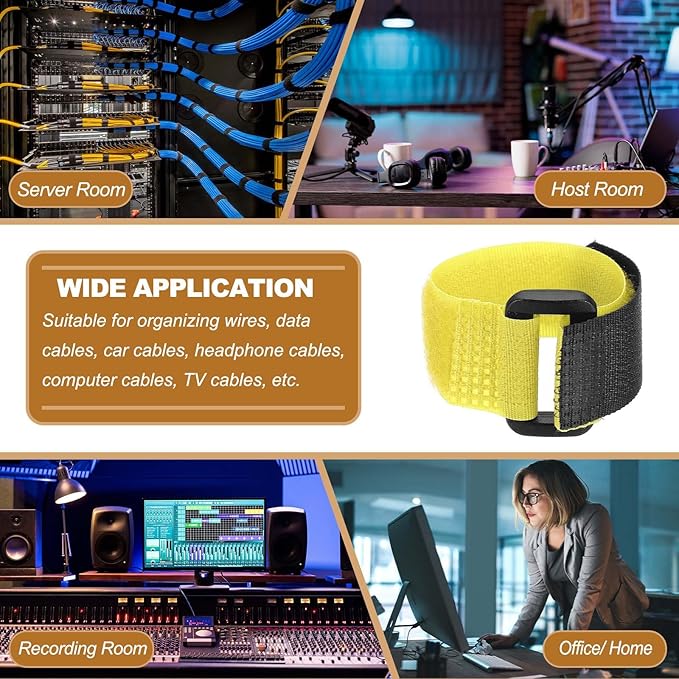 - Application: Keep your space tidy with reusable cable ties! Suitable for organizing wires, data cables, car cables, headphone cables, computer cables, TV cables, etc. It can also be used to tie curtains, tie umbrellas, fix tools, and organize holiday lights. Widely used in offices, homes, and garages