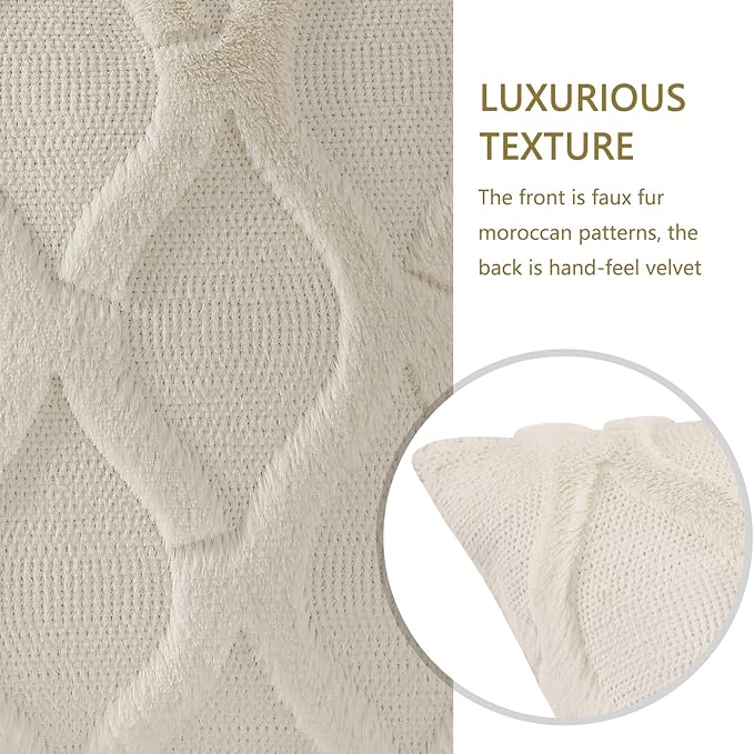 decorUhome Set of 4 Beige Throw Pillow Covers 18x18 Inch, Neutral Decorative Soft Plush Faux Wool Couch Pillow Covers, Farmhouse Pillow Cases for Living Room Bed Sofa