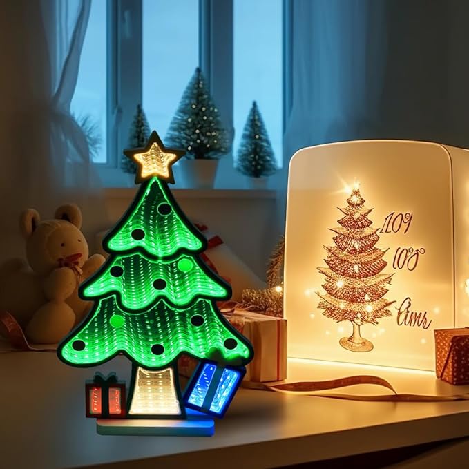 - 🎄【christmas decorations indoor】Celebrate the magic of Christmas with this Christmas Tree Tunnel Light, a dazzling representation of holiday cheer. Featuring a glowing Christmas tree crowned with a shining star and surrounded by colorful gift boxes, this decor piece showcases a mesmerizing infinity tunnel effect that brings depth and wonder to your festive decorations. USB-powered and easy to display, it’s the perfect addition to your holiday setup.