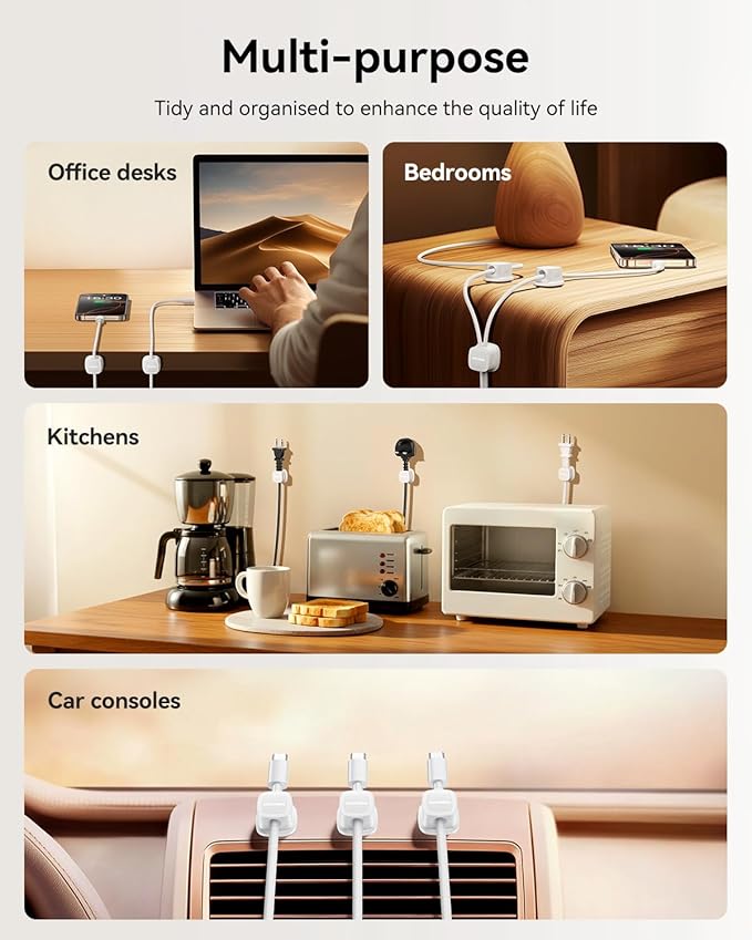 - General Compatibility:Cord holder with the 7.5mm widened card slot (7.5mm Cable Slot) is suitable for USB cable, HDMI cable, charger cable, home appliance cable, etc. (diameter ≤7.5mm). The spring clamping structure ensures that the wire is stable and does not slip. Smooth Pull-out Design makes it easier to use cables and avoid wrapping