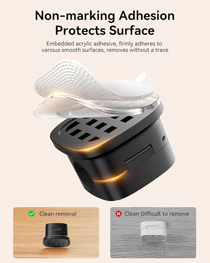 - Super Adhesive:The cable management Equipped with Upgrade Acrylic Adhesive, the adhesiveness is increased by 300% compared to ordinary 3M. It firmly adheres to smooth surfaces such as wooden tables/glass/ceramic tiles, and does not leave any residual glue after removal. Each box comes with a Reusable Adhesive Pad, which extends the service life and is more environmentally friendly and economical.