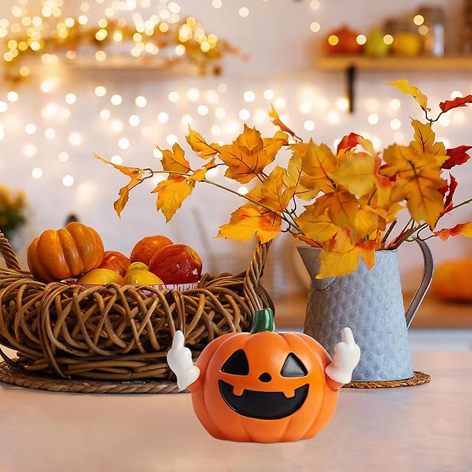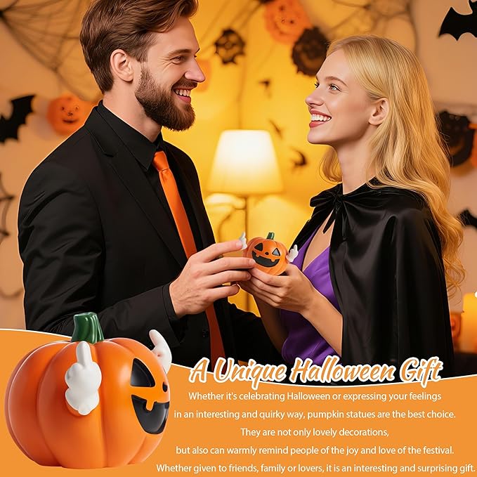 - 【Halloween Pumpkin Figurine】Made of high-quality resin, each pumpkin figurine is hand-painted and features a unique texture. This funny Pumpkin statue blends cute and quirky elements, adding a unique touch to your Halloween decor or Thanksgiving decorations