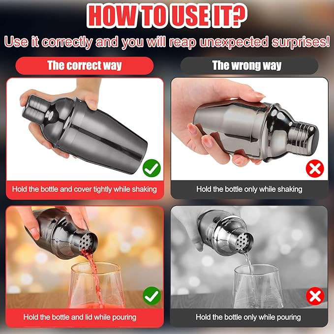 - Ideal for Beginners: the drink shaker is suitable for beginners looking to explore the process of cocktail making; It offers an insulation design keeping the ice intact and allows you to enjoy a refreshing cold drink for hours, showing the process of adding ingredients into your shaker and ensures an effortless, smooth flow when pouring your cocktail, ensuring that you can enjoy the process of crafting your cocktails