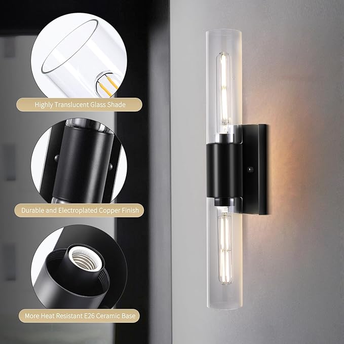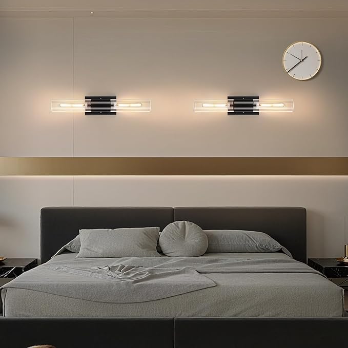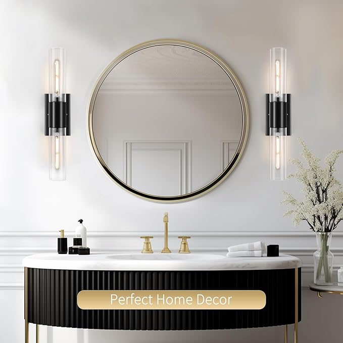 - 🔶 Modern Wall Sconces Set of 2 – Stylish Black Finish: Upgrade your space with this elegant wall sconce hardwired set. Featuring a sleek black finish with clear glass shades, these modern wall sconces add luxury and sophistication to any room. Perfect for those seeking black bathroom decor, bedroom wall sconces, or black home decor accents.