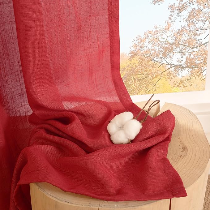 BGment Linen Curtains 54 Inch Length for Short Bedroom Window, Red Semi Sheer Drapes Lightweight Rustic Textured for Living Room Farmhouse Fall Decor Rod Pocket, 2 Panels Set, Each 42 Inch Wide