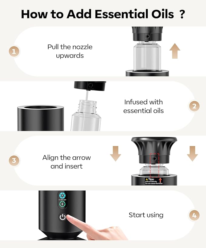- SAFETY AND MAINTENANCE: The diffuser should be used in an upright position always.Please use the original powercord that comes with diffuser. The natural scent is safe for both pets and children, creating a healthy space for an enjoyable and worry-free fragrance experience.
