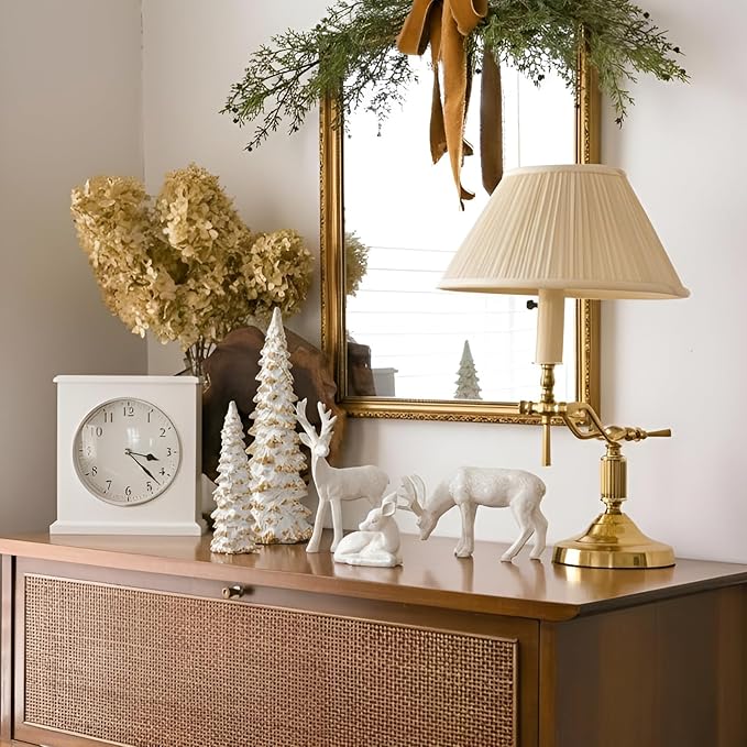 - 【Durable Resin】 Crafted from high-quality resin, these Christmas tree figurines and deer statues are sturdy, long-lasting, and finely detailed. Each reindeer figurine and Christmas tree decor piece stands securely as elegant holiday decor